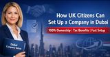 UK citizens can set up a company in Dubai with 100% ownership, low taxes, easy licensing, residency visas, and full business support.
